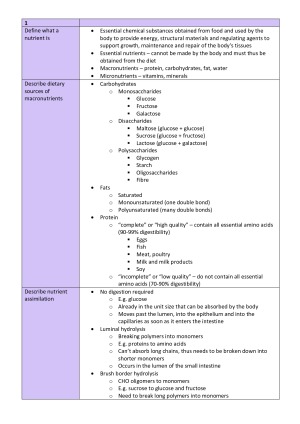 Thorough but concise notes on each of the learning objectives for Nutrition Phys - separated into each topic and each lecture. Organised into simple to understand dot-points, and includes relevant examples and diagrams from the lectures. Summarises notes from lectures, labs, the textbook and research. Super helpful for revising for the exam as exam questions are based on the learning objectives!