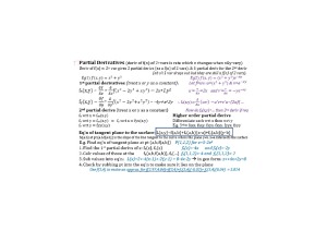 A double sided A4 summary sheet of the topics covered in MTH102 at CSU including: Topic 1 & 2: integral rules (including integration by parts, partial fractions) Topic 3: first order differential equations Topic 4: mathematical modelling Topic 5: vectors (dot product, cross product, scalar and vector projections, Topic 6: functions of several variables Topic 7: partial derivatives (incl equation of tangent plane to the surface, linear approximation, gradient vector, directional derivative) Topic 8: maximum and minimum values Topic 9: Infinite sequences and series (including tests and power series) Topic 10: Taylor series Topic 11: Complex numbers Additional: * table of integrals * table of derivatives and brief rules (product, quotient, chain) * log laws * trig functions and identities (incl hyperbolic)