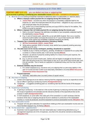 BUSN3054 Taxation Law and Practice - Exam Plans/Notes (Grade: HD)