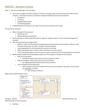 MAF203 - Business Finance High Quality Every Topic Covered in Great Detail