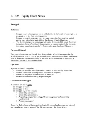 Includes comprehensive notes on: - Estoppel - Undue Influence - Unconscionable Bargain - Wife's Special Equity - Breach of Fiduciary Duty - Breach of Confidence - Remedies