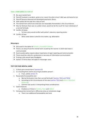 Comprehensive and easy to follow HD exam notes for LAW1113. Inclusive of all legislation and cases on reading guide as of semester 2 2016. Topics covered: -Introduction -Trespass -Negligence: duty of care -Negligence: particular duty scenarios -Negligence: breach of duty -Negligence: causation -Negligence: remoteness -Defences -Damages -Vicarious liability