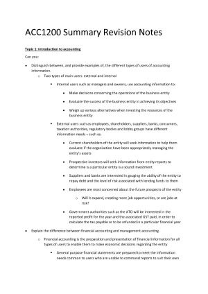This covers 12 weeks of content and is organised according to everything labelled as necessary for the exam. The topics covered include: Topic 1: Introduction to Accounting Topic 2: Business Transactions Topic 3: Income Statements Topic 4: Balance Seets Topic 5: Statement of Cash Flows Topic 6: Business Structures Topic 7: Business Planning Topic 8: Budgeting Topic 9: Cost-volume profit Topic 10: Costing and Pricing Topic 11: Analysis of Financial statements Topic 12: Capital Investment
