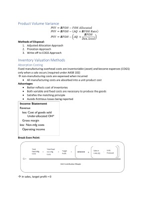 Topics 1-4: 1. Costing systems, CVP analysis, allocation of indirect costs and PVV 2. Absorption, variable and throughput costing, Capacity decisions, Break even point 3. Inventory management, EOQ and JIT 4. Decision making and relevant information I