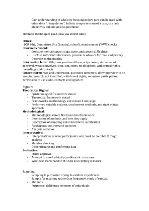 Topics include: - Epistemology - Theoretical Frameworks - Methodologies (IP, Grounded theory, discursive psychology, ethnography, historiography, case studies etc.) - Ethics - Rigour (Theoretical, methodological, interpretative and evaluative) - Sampling - Interviewing - Analysis - Research Processes