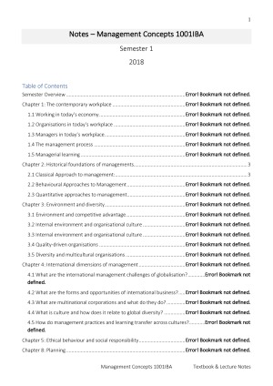 Attended each lecture every week for 12 weeks and all tutorials. These notes include a summary from lecture powerpoints, discussion and textbook materials. Also includes required information about assessment criteria.