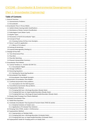CIV3248 Notes: Part 1 of 2 Groundwater Engineering notes with worked examples for use in open book exam CIV2263 Notes: Part 2 of 2 Environmental Geoengineering with worked examples for use in open book exam