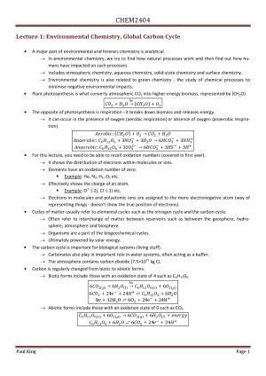 My CHEM2404 (Forensic and Environmental Chemistry) notes in full. I got 87 with these and they covers all lecture topics. It's a course that many students find very difficult and honestly, I can definitely see why. The course has a structure that's very difficult to follow and if you're not ahead, you can easily fall behind and get stuck.