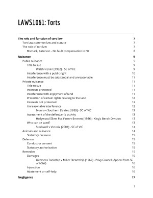 This is a comprehensive set of notes covering the readings from EVERY week in full detail. This includes ALL cases and academic articles, summarised and analysed, ready to be used in an essay or problem question. The headings follow those set out in the weekly reading guide, so getting class participation marks should be a breeze. Tables, clear subheadings and bolded keywords make information easy to find in class and in the exam room.