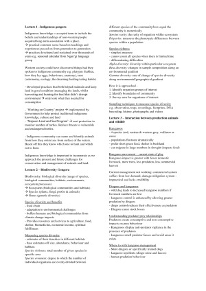 Notes include all lectures and commentary. Very succinct and concise. Also very easy to follow. Also includes ALL notes from practicals to Camden. TOPICS INCLUDE Indigenous Gongora, Biodiversity Gongora, Interaction between production animals and wildlife, global food challenge, pig production, beef production, sheep production, poultry, dairy production, goat production, pig health & welfare, aquaculture, breeding, genetics, biotechnology, and the Australian Food Industry, PRACTICALS included at the end of the documents.