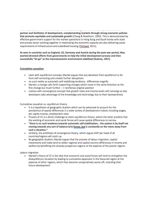 Contains summaries of topics covered for exam with some examples/case studies: - social capital - finance - state intervention - cumulative causation - sustainable development