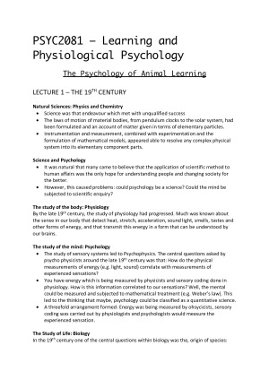 HD quality notes. Clear, concise explanations with diagrams. All lecture content included for the semester. Topics covered include: - The Physiology of Animal Learning - Human Associative Learning - Feeding and Body Regulation - Addiction and Attachment - Pavlovian and Instrumental Conditioning: Neurobiology and Interactions Hope these help!