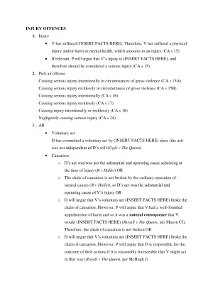 These are pure exam notes that step you through each offence and defence, complete with the legislative and case law references. These notes cover: non-fatal non-sexual offences, sexual offences, homicides and statutory defences.