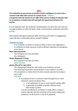 These notes are the perfect blend of Lecture notes, LSS notes, Tutorial notes and Reading materials. They are formatted perfectly and are so easy to read and use effectively in an exam or throughout the semester. The notes are in summary form with principles followed by the case or statute that supports them and the cases are presented in table format for ease and convenience. They are the best companion for any student undertaking Contract A at Monash Law. The topics included are offer, acceptance, consideration, intention, privity, capacity, certainty, formalities, estoppel, express terms, implied terms, the ACL, and the implied duty of good faith