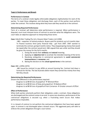 Topic 6: Performance and Breach (including relevant case studies) Topic 7: Remedies (including relevant case studies) Topic 9: Liability in Tort Law – Negligence (including relevant case studies) Topic 10: Business Organisations (including relevant case studies)