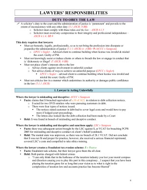 These notes include absolutely everything you need to know for this subject!! They show detailed 'step-by-step' process on how to answer exam questions and include all case facts. Hundreds of hours went into these notes and I don't think you would be able to find better. I completed the subject in Semester 1 2018 and obtained a score of 79. The Topics Covered in these 'Ethics Notes' are: - The Four Approaches to Ethics (including adversarial advocate, responsible lawyer etc.) - Lawyers' Responsibilities (duties to the law, the court, overarching obligations, civil and criminal responsibilities) - Specific Lawyer's Responsibilities (prosecution duties, defense duties, ADR duties) - Lawyer's Duties to the Client (general confidentiality, lawyer-client confidentiality, client-client confidentiality, trust accounting, costs duties) - Admission to Practice - Sanctions (including the complaint procedure and exploring the different types of disciplinary breach)