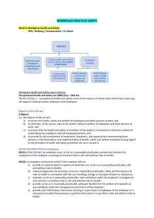 - these notes are very comprehensive and cover all lectures from weeks 1-12 as well as further input from the textbook, tutorial questions, cases and notes derived from undertaking practice exams. - these notes are clearly set out, include diagrams and are highlighted / colour coded for easy reference - these notes were used during the exam and provided a solid reference to assist me in attaining a HD grade. the following topics are covered in these notes: - types of work arrangements - implied terms - wages and pay - NES + Modern awards - workplace health and safety - general protections - enterprise bargaining and agreement making - termination of employment - equal opportunity and anti-discrimination