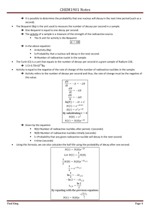 Sydney University CHEM1101 CHEM 1901 Notes. It can be quite difficult to do well in this course, especially with the big difference between HSC and university so having a set of notes that cover the course will really help you.