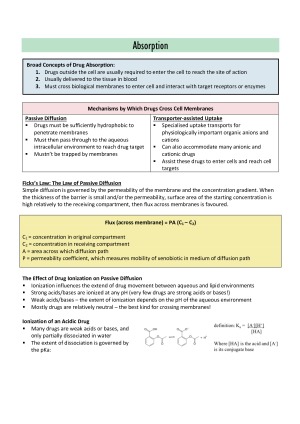 This set of notes covers all lecture material - from Module 1 to Module 4. Please note Module 1 is at the back of the document due to a formatting error! Helpful diagrams and example/definition boxes make notes easy to understand and absorb. Can be printed in black and white without affecting the quality of the notes. Topics Included: - Agonists - Antagonists - Receptors: New Insights - Absorption - Phase I Metabolism - Phase II Metabolism - Elimination - Pharmacokinetis - Pharmacogenetics - Experimental Design and Statistical Analysis - Introduction to the Autonomic Nervous System - Sympathetic Nervous System - Parasympathetic Nervous System - ACh and ACh Receptors - Asthma (Applied Pharmacology) - Introduction to Molecular Pharmacology - Molecular Binding - Anticholinesterase Poisoning - Structure-Activity Relationships for Cholinergic Drugs