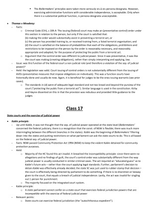 Course summary notes for Public Law. Includes the following topics: - The Constitution, its structure and principles. - Amendment of the Commonwealth Constitution. - Representation of the people in the legislature. - The Right to Vote. - Qualification and Disqualification of Members of Parliament and disputed elections. - The Executive & The Governor-General/Governor. - Introduction to executive power, Executive power conferred by statute & Prerogative Powers. - Nationhood Power. - The capacities of the Executive – the powers to contract and spend. - Access to Government documents, Freedom of information & Production of documents ordered by House. - Rule-making accountability. - Fourth Arm of Government – Integrity Bodies. - The separation of powers and the meaning of judicial power. - The separation of powers (continued) and its effect on federal judges and federal courts. - State courts and the exercise of judicial power. - Federal detention of individuals and the exercise of legislative and judicial power. - Matters and standing before the courts. Does NOT include revision, exam preparation or problem-solving seminars.