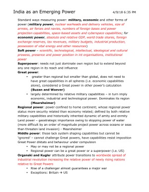 Notes from the textbook/readings for the following tutorial topics: - theory of international relations - War/peace/security - The US and China - India - International Law and the UN - IPE, Poverty and Development - States/Non-State Actors - Foreign Fighters - Violence against Women - Australia in Asia - Nuclear Proliferation