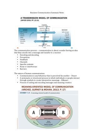 These MGMT30018 notes contain detailed and comprehensive examples and explanations for all content from lectures 1-12. All information for any questions covered in the exam can be found in these notes. The notes contain all lecture material covered in this subject, including the following topics: - Communication process and models - Interpersonal communication - Persuasion - Corporate communication - Intercultural communication - Communication spaces - Meetings - ICT - Managing conflict - Employee voice - Gossip and rumour