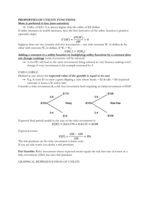 Very detailed notes incorporating lecture notes, tutorials & the textbook. Including diagrams and worked examples. Contents of the notes include: - introduction - investment decisions under uncertainty - efficient portfolio selection - single index model - capital asset pricing model - alternative asset pricing models - market efficiency I - market efficiency II - investor style - performance evaluation - hedge funds & illiquid assets