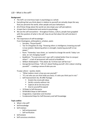 Covers topics: - social psychology in crisis - existential approach to social psychology - different types of discrimination and reduction strategies - the self Very comprehensive and detailed! Presented in dot points, diagrams and tables
