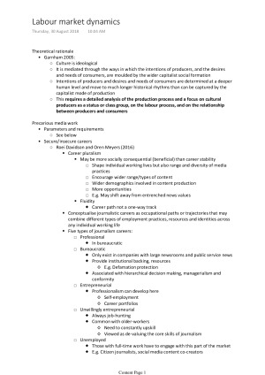 Includes lecture weeks 1-12. All required readings are summarised. Topics: Mapping Business models Internet and industry organisation Competitive pressures Labour market dynamics Content creators Celebrity and influencers Media critics and advocates Policy and regulatory practice Telling Australian stories Self-regulation Data collection, only privacy and digital rights