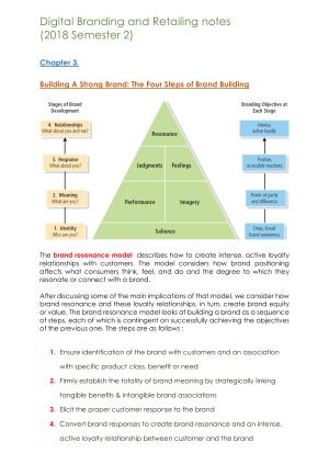 Ch. 3 Students should have a thorough understanding of Figures and Building a Strong Brand: The Four Steps of Brand Building Salience Performance and Brand Imagery Judgments and Brand Feelings Resonance Ch. 4 Brand elements Criteria for choosing brand elements Options and tactics for brand elements Counterfeiting Ch. 6 Developing Integrated Marketing Communication Programs Criteria for IMC Programs leveraging of secondary brand associations. The new accountability Conducting Brand audits Ch. 12 New products and brand extensions Advantages and disadvantages of brand extensions Understanding how consumers evaluate brand extensions Retiring brands Ch. 15 7 deadly sins of Brand Management Luxury branding.