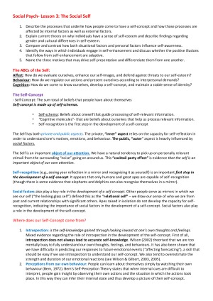 All the notes you need from Week 1 through to Week 12. They are VERY comprehensive and was everything I needed for the exam. Honestly, these notes will help you if you are someone who works full-time and doesn't have the extra capacity to watch the lectures, make notes, or attend every tutorial. There may be a lot of pages all together, but they are separated by week, and again is everything you need for this subject. Great for ONLINE PSY30009 and on CAMPUS. Topics: -Week 1 (Introduction) -Week 2 (Attitudes) -Week 3 (The Social Self) -Week 4 (Perceiving Persons) -Week 5 (Stereotypes, Prejudice, Discrimination) -Week 6 (Conformity, Compliance, Obedience) -Week 7 (Group Processes) -Week 8 (Attraction and Close Relationships) -Week 9 (Helping Others) -Week 10 (Aggression) -Week 11 (Health) -Week 12 (Law)