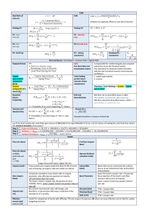 This formula sheet will save you hours of time!! Spend more time studying other units instead of wasting time on putting together your own formula sheet. Extremely detailed formula sheet for the ACST101 final exam. Computerised, accurate formulas. Formula sheet is a summary of: - Time Value of Money - Risk and Return - Bonds - Shares - Raising Capital - Capital Budgeting - Global Financial Crisis These notes are computed from lecture notes, the tutor, the recommended unit textbook and all 12 PAL Sessions!!