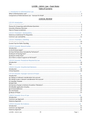 Notes completed by student with GPA just short of 7. All up to date content, perfect for exam performance. Comprehensive, detailed and logical notes covering the entire Administrative Law unit. Notes are arranged according to topic, with clear headings and introductory paragraphs with preliminary information including problem-solving instructions tailored to each topic. Case summaries are included and linked to relevant areas of the notes, including catchwords for quick and easy reference in the exam.