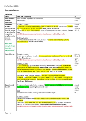 Your lifesaver for urgent and quick study of the whole course!!! Exhaustive and comprehensive revision notes for Income Tax Law III. It includes all the topics (12 topics) covered and since the exam is open-book, u can bring it along to the final exam. ;)