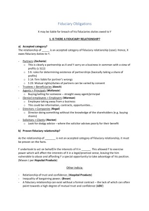 Exam notes for LAW5008 Principles of Equity made in Trimester 1 2018 (Monash JD). These notes contain checklists, template answers and introductory sentences. They are designed as clearly and concisely as possible. Topics: -Introduction to Equity -Fiduciary Duties and Relationships -Breach of Confidence -Personal Remedies -Proprietary Remedies -Assignment of Property Rights Disclaimer: The accuracy of these notes is not guaranteed