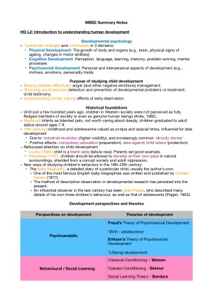 Summary notes for Mind, Brain and Behaviour 2. Covers all lectures for Human Development, Social Psychology, Personality and Clinical Psychology. Also includes notes from all Quantitative Research Methods online modules, as well as Quantitative Research Methods tutorials.