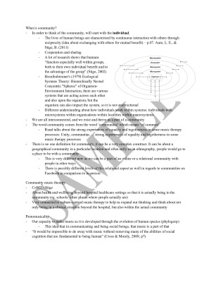 A complete set of detailed notes covering all aspects of every lecture for all assessable quizzes (Topics: Music and Health, Music and Mental Health, Music and Physical Health, Music and Psychoanalysis, Music and Identity, Music and Mindfulness, Music and Spirituality, Music with Families: Families in Crisis, Music and Power, Music for building healthy communities, Music in a Global Context) These notes helped me achieve full marks on all of the weekly quizzes and it can help you too! Simply using these detailed notes and finding the corresponding topics will allow you to make the most out of this subject. These notes also helped me a lot in the final assessment task (personal music playlist essay) allowing me to score H1 in the process. This is all you need for your ease your way through the semester!