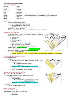If you want to easily get a H1 for anatomy and a score above 90, then theres are the notes for you. The notes are written in a concise, dot point manner which is perfect for rote learning. Notes are accompanied with images from lecture slides, as well as from the internet for better understanding. TOPIC LIST: The topics that these notes cover are: -Evolution All information in the notes are from the lecture slides, as well as additional information from the recommended textbook when the lecture slides weren't helpful. After buying these cheap notes, you will spend no time writing notes, and all of your time memorising and consolidating your anatomy knowledge! I've done all of the hard work for you, so get that easy H1!