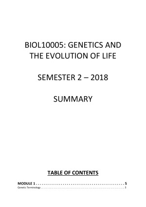 Summary notes for BIOL10005 Genetics & the Evolution of Life comprised using notes from lectures, tutorials, BioBytes and the assigned textbook. Topics covered include: - Genetics (inheritance, linkage, expression & mutation) - Animal Diversity - Protists - Evolution of Plants