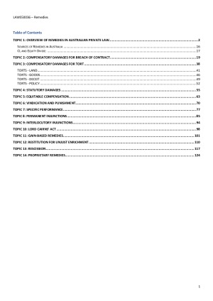 Exam & Hypothetical Notes for Remedies. Outlines: - Relevant case notes, theories and principles - Colour co-ordinated - Hypo structure for answering exam questions