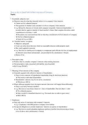 Effects of Registration Types of Companies Constitution & Replaceable Rules Share Capital, Loan Capital & Dividends Directors, Members & Corporate Decision-Making Corporate Contracting Directors' Duties Consequences of Breach Members' Remedies Corporate Mortality
