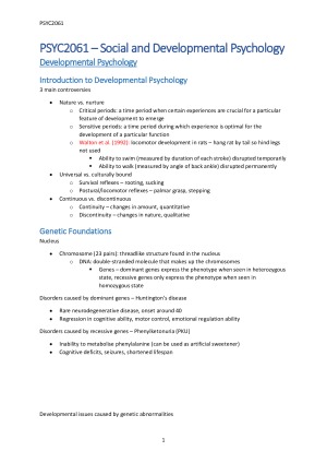 Developmental Psychology Topics: 1. Introduction 2. Genetic Foundations 3. Prenatal Development 4. Research Designs 5. Perceptual Development 6. Cognitive Development 7. Children's Understanding of Health and Fitness 8. Emotional Development 9. Memory Development 10. Social Development Social Psychology Topics: 1. History and Methods in Social Psychology 2. Human Sociability and Interpersonal Behaviour 3. Social Perception and Cognition 4. Impression Formation and Attribution 5. Social Interaction and Communication 6. Prejudice and Discrimination