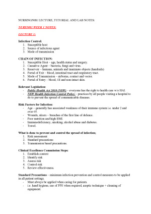 NURS5081 is a painfully boring subject that will make you want to never attend a class again. I have a solution for you. These comprehensive lecture, tutorial and lab notes will mean you never have to attend anything that isn't mandatory. These notes allowed me to achieve an 86 in this course. I did all of the work that you don't have to do to be successful in this subject. TOPICS: 1. Infection Control. 2. Adult Health Assessment. 3. Paediatric Health Assessment. 4. Social Determinants of Health. 5. Comfort and Safety. 6. Conceptual Framework of Nursing. 7. Pressure Injuries. 8. Evidence Based Practice