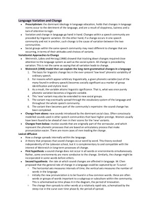 Contains relevant content from all weeks and modules, plus 90% of the readings summarised. Modules: 1 - Introduction. 2 - Regional Dialectology. 3 - Social Dialectology. 4 - Language Variation and Change. 5 - Language, Gender and Sexuality. 6 - Style and Register - Multilingualism and Codeswitching. 7 - Social Interaction. 8 - Politeness. 9 - Pidgins and Creoles. 10 - Language Contact. 11 - Language Revival. 12 - Using Linguistics to Change the World.
