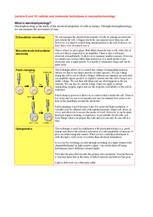 These summary notes outline the concepts covered in the lectures in a simplistic way, breaking down complicated ideas into colloquial, easy-to-understand explanations. They cover all lecture material and helped me to gain a mark of 91 (high distinction) in this subject. It covers the neuropharmacology of the major neurotransmitters and their role in neuropsychiatric diseases. Furthermore, they cover conditions such as Alzheimer's disease, movement disorders, stroke, depression, anxiety, epilepsy, pain and schizophrenia The topics covered are: - Neurons - Monoamines - Neuropeptides - Transporters and targets of drug actions - Voltage gated ion channels - Ligand gated ion channels - Cellular and molecular techniques in neuropharmacology - GPCRs - Behavioural neuropharmacology - Genetic techniques in pharmacology - Cellular and molecular techniques in neuropharmacology - MS and other neuro-inflammatory diseases and their treatments - Mood disorders - Antipsychotics - Parkinson's - Anticonvulsants (epilepsy) - Alzheimer's/Cognitive Enhancers - Sedatives, hypnotics and anxiolytics - Opioids and analgesia - Chronic pain therapies - Migraine - Neuroadaptive basis of addiction - Addiction - Cannabinoid therapies for CNS disorders