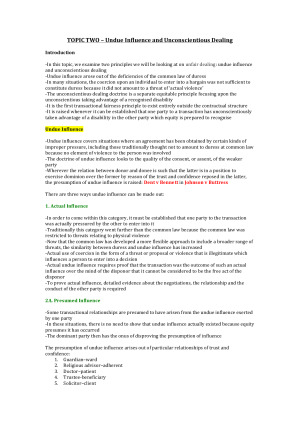 Equity and Trusts is not an overly large unit, however it is rather complex and requires sound thinking. These notes provide everything that you will need to not only do well in the assignment, but blitz the exam as well. All cases and legislation have been neatly summarised in an easy to understand way so that you are not feeling under the pump as the trimester drags on. Topics include: EQUITY: 1. The Origin and Nature of Equity and its Relationship with the Common Law 2. Undue Influence and Unconscientious Dealing 3. Fiduciary Relationships and Duties 4. Fiduciary Remedies 5. Equitable Remedies: Injunction & Specific Performance TRUSTS: 6. The Nature of a Trust 7. (Part 1) Trustee Duties 7. (Part 2) Trustee and Beneficiary Powers and Rights 8. Statutory Formalities 9. Certainty Requirements 10. Charitable Trusts