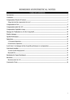 These notes contain hypothetical exam notes for remedies. You may also purchase my essay notes separately.
