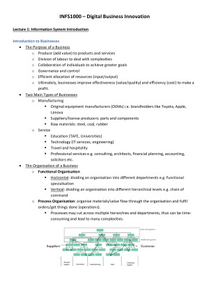 These notes were compiled from lectures, slides, readings and tutorials. Lecture 1: Information System Introduction Lecture 2: Business Processes Lecture 3: Strategy and Competitive Advantage Lecture 4 & 5: Databases and Information Lecture 6: Ethics Lecture 7: Business Process Management Lecture 8: Process Modelling BPMN Lecture 9: Introduction to Process Improvement Lecture 10: E-Business and Web Lecture 11: Business Intelligence Lecture 12: Collaboration and Social Media