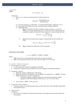 The notes include all lectures and the following topics: - Methods of Valuation - Pro-forma Forecasting - Financial Statements - Free Cash Flow (FCF) Calculations - Enterprise Value and Terminal Value - FCFF and FCFE - Forecast Horizon selection - The Cost of Capital - Relative Valuation - Derivation of Equity Multiples - Alternative EV Models - Leveraged Buyout Analysis