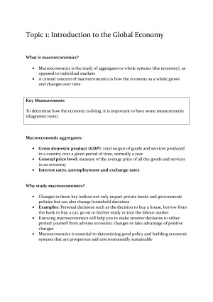 MAE203 The Global Economy Study Notes